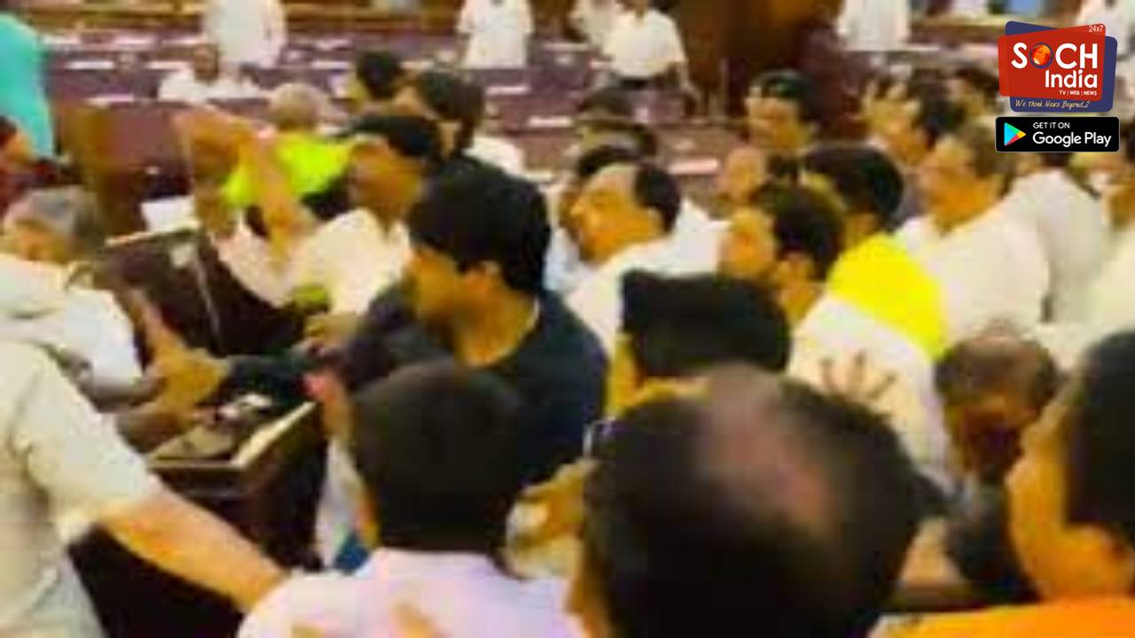 In a video shared on social media by BJP leaders, including its IT cell chief Amit Malviya and spokesperson Shehzad Jai Hind, several MLAs are seen locked in a scuffle on the floor of the House as marshals and police officers struggle to stop the fight.